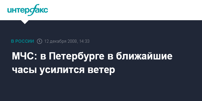 Москва. 12 декабря. INTERFAX.RU - Главное управление МЧС по Петербургу предупреждает жителей и гостей города о неблагоприятном погодном явлении, ожидаемом в ближайшие часы.