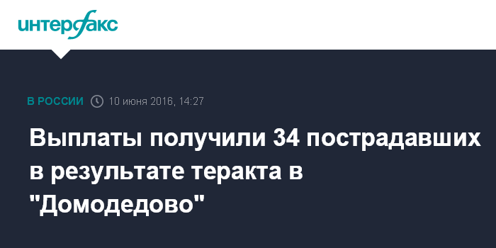 Выплаты получили 34 пострадавших в результате теракта в "Домодедово"