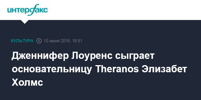 Москва. 10 июня. INTERFAX.RU - Обладательница премии "Оскар" Дженнифер Лоуренс сыграет в новом фильме об основательнице биотехнологического стартапа Theranos Элизабет Холмс.
