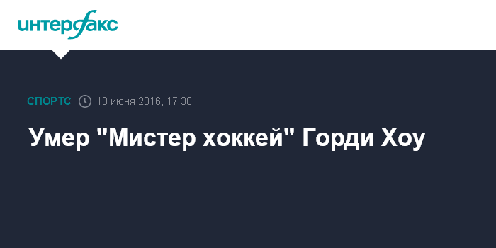 Москва. 10 июня. INTERFAX.RU - Канадский хоккеист Горди Хоу скончался в возрасте 88 лет в США, сообщает официальный твиттер клуба Национальной хоккейной лиги "Детройт".