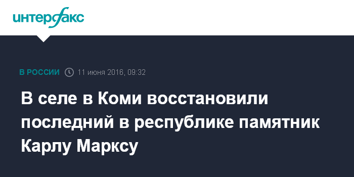 Москва. 11 июня. INTERFAX.RU - Коммунисты восстановили и перенесли на новое место бюст Карла Маркса, который рассыпался на обочине в селе Летка Прилузского района Коми, сообщили "Интерфаксу" в местной администрации.