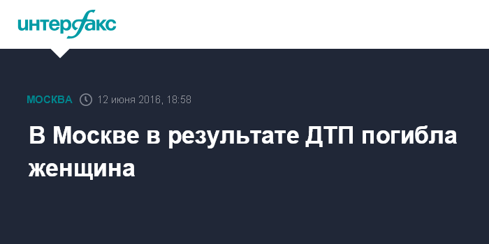 Москва. 12 июня. INTERFAX.RU - Женщина погибла в результате аварии в Москве, сообщили "Интерфаксу" в воскресенье в ГУ МВД России по столице.