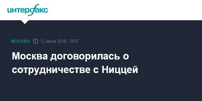 Москва. 12 июня. INTERFAX.RU - В рамках проведения Дней Москвы во Франции на Лазурном берегу состоялось подписание меморандума о взаимопонимании между Москвой и Ниццей, сообщили "Интерфаксу" в пресс-центре департамента внешнеэкономических и международных связей (ДВМС) в воскресенье.