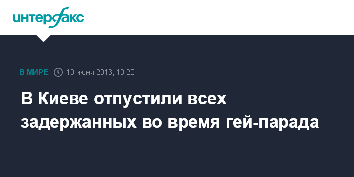 Москва. 13 июня. INTERFAX.RU - Управление Национальной полиции Украины в Киеве расследует три уголовных производства по итогам прошедшего в воскресенье, 12 июня, "Марша равенства".