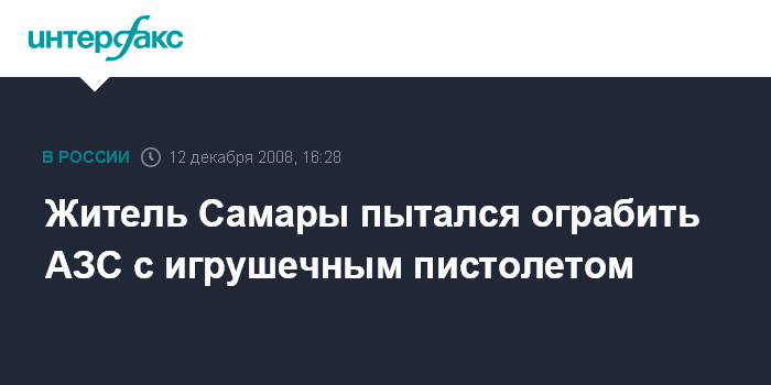 Москва. 12 декабря. INTERFAX.RU - Житель Самары задержан за попытку ограбления автозаправочной станции.