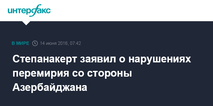 Москва. 14 июня. INTERFAX.RU - Ситуация на линии соприкосновения вооруженных сил Нагорного Карабаха и Азербайджана в ночь на вторник продолжала оставаться относительно спокойной, сообщили "Интерфаксу" в пресс-службе министерства обороны непризнанной НКР.
