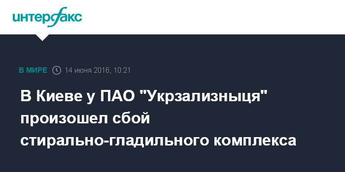 Москва. 14 июня. INTERFAX.RU - ПАО "Укрзализныця" оперативно восстанавливает оборудование стирально-гладильного комплекса вагонного участка Киев-Пассажирский, которое вечером 13 июня вышло из строя.