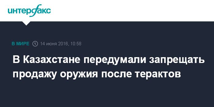 Москва. 14 июня. INTERFAX.RU - После терактов в Актобе требования к оружейным магазинам и охранным структурам будут ужесточены, но запрет на продажу оружия вводить не будут.