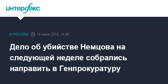 Дело об убийстве Немцова на следующей неделе собрались направить в Генпрокуратуру