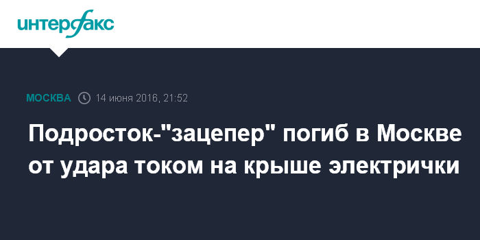 Москва. 14 июня. INTERFAX.RU - Столичные следователи проверяют обстоятельства гибели от удара током подростка, катавшегося на крыше электрички, сообщается во вторник на сайте Московского межрегионального СУ на транспорте СК РФ.