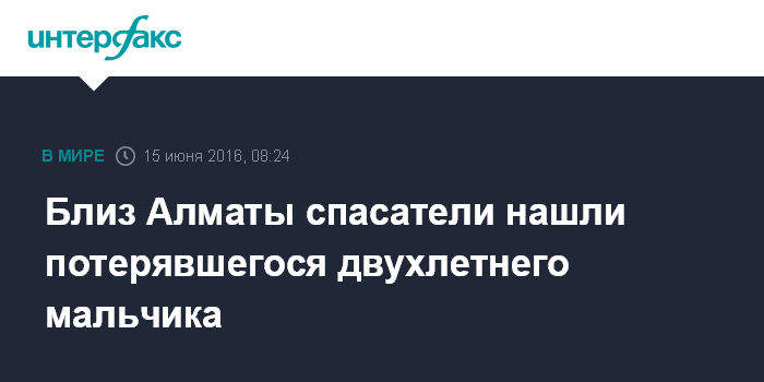 Москва. 15 июня. INTERFAX.RU - В Каскеленском ущелье близ Алматы найден невредимым двухлетний мальчик, потерявшийся в ночь на минувший вторник, сообщила "Интерфаксу" официальный представитель департамента по ЧС Алматы Сандугаш Баймухамбетова.