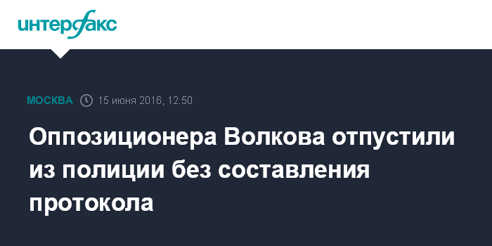 Москва. 15 июня. INTERFAX.RU - Правоохранительные органы отпустили из отделения полиции оппозиционного активиста Леонида Волкова, соратника Алексея Навального, задержанного в Москве у здания Совета Федерации.