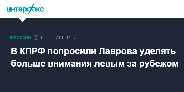 Москва. 15 июня. INTERFAX.RU - В КПРФ попросили главу МИД РФ Сергея Лаврова в международных контактах больше обращать внимание на представителей левых партий.
