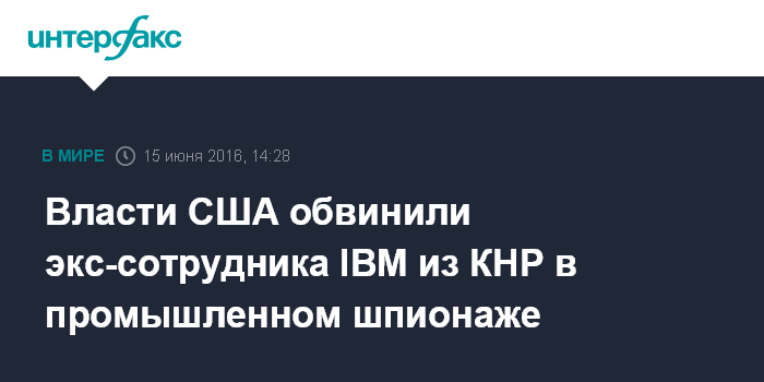 Власти США обвинили экс-сотрудника IBM из КНР в промышленном шпионаже