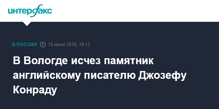 Москва. 15 июня. INTERFAX.RU - Памятник английскому писателю Джозефу Конраду исчез с одной из центральных улиц Вологды.