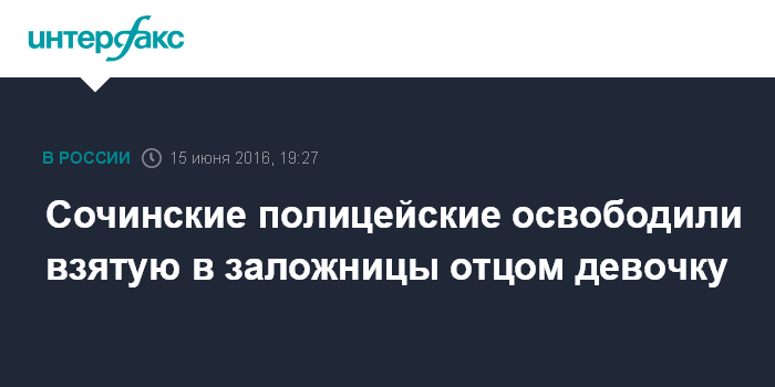 Москва. 15 июня. INTERFAX.RU - Операция по освобождению 12-летней девочки, взятой в заложники в одном из домов в Сочи ее отцом, благополучно завершена, сообщили агентству "Интерфакс" в пресс-службе ГУ МВД по Краснодарскому краю в среду.