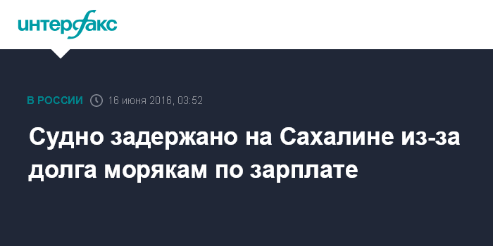 Москва. 16 июня. INTERFAX.RU - Теплоход ST Wind (флаг России) задержан властями порта Невельск на Сахалине из-за невыплаты зарплаты морякам.