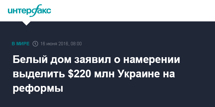 Москва. 16 июня. INTERFAX.RU - США собираются предоставить $220 млн Украине на проведение экономических, политических и энергетических реформ.