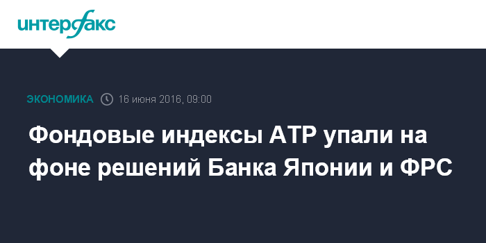 Москва. 16 июня. INTERFAX.RU - Азиатские фондовые рынки проводят торги в "красной зоне" в четверг на фоне решений Банка Японии и Федеральной резервной системы (ФРС), которые предпочли занять выжидательную позицию и оставили денежно-кредитную политику без изменений.