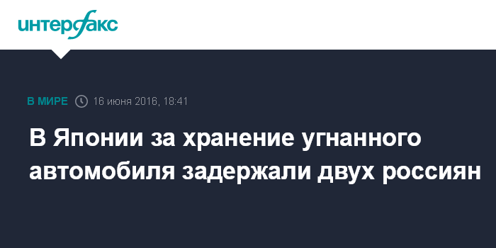 "Правоохранительные органы Японии направили в адрес посольства уведомление о том, что были задержаны двое российских граждан, которые подозреваются в хранении угнанного автомобиля", - сказал он "Интерфаксу".