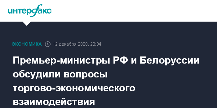 Премьер-министры РФ и Белоруссии обсудили вопросы торгово-экономического взаимодействия