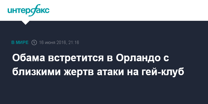 Москва. 16 июня. INTERFAX.RU - Президент США Барак Обама прибыл в четверг в город Орландо (штат Флорида), где в минувшее воскресенье расстреляли посетителей гей-клуба.