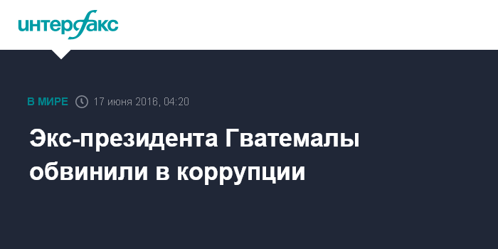 Москва. 17 июня. INTERFAX.RU - Бывших президента и вице-президента Гватемалы официально обвинили в коррупции и отмывании денег. Как передает BBC, Отто Перес Молина и Роксана Бальдетти входят в число 70 человек, обвиняемых в участии в коррупционной схеме, через которую были присвоены миллионы долларов государственных денег.