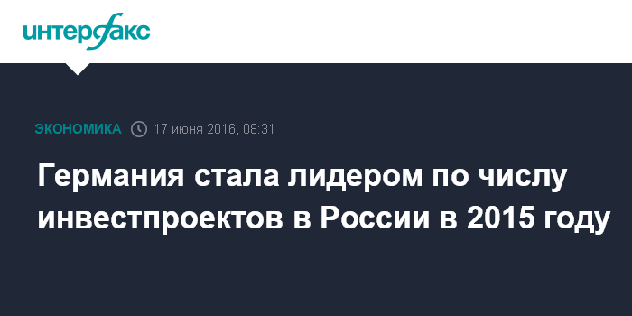 Германия стала лидером по числу инвестпроектов в России в 2015 году