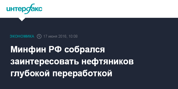 Москва. 17 июня. INTERFAX.RU - Минфин хочет заинтересовать нефтяные компании инвестировать в высококачественную глубокую переработку, а не просто в развитие добычи нефти, заявил глава министерства Антон Силуанов, выступая на ПМЭФ.