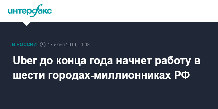 Таким образом, сервис станет доступен жителям всех российских городов с численностью населения более 1 млн человек. Сейчас Uber уже работает в девяти городах-миллионниках: в Москве, Петербурге, Екатеринбурге, Казани, Красноярске, Нижнем Новгороде, Новосибирске, Ростове-на-Дону и Уфе.
