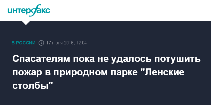 Москва. 17 июня. INTERFAX.RU - Почти 50 человек борются с пожаром на территории природного парка "Ленские столбы" в Якутии, сообщает пресс-служба Минприроды республики в пятницу.