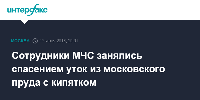 Москва. 17 июня. INTERFAX.RU - Сотрудники МЧС спасают уток из пруда на юге Москвы, куда течет кипяток после прорыва трубы, сообщает M24.ru со ссылкой на пресс-службу главного управления МЧС России по Москве.