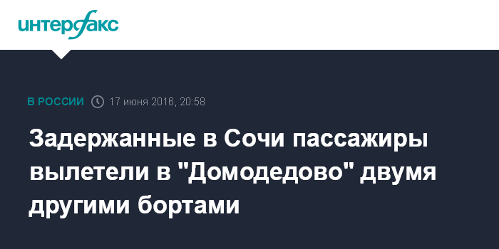 Задержанные в Сочи пассажиры вылетели в "Домодедово" двумя другими бортами