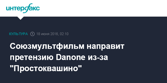Ранее сообщалось, что министр культуры России обвинил компанию Danone в недобросовестном использовании образов из советских мультфильмов в оформлении и рекламе своей продукции.