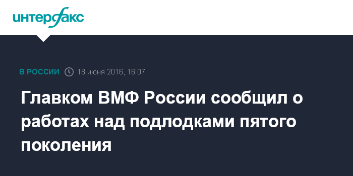 Москва. 18 июня. INTERFAX.RU - Для ВМФ России разрабатываются атомные подводные лодки пятого поколения, сообщил в субботу главком ВМФ адмирал Владимир Королев.