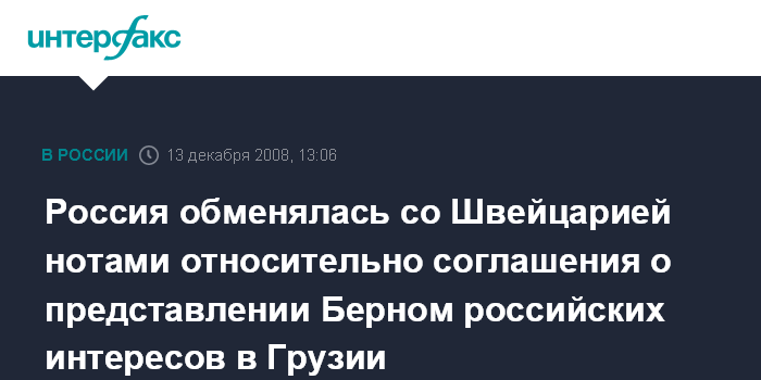 Россия обменялась со Швейцарией нотами относительно соглашения о представлении Берном российских интересов в Грузии