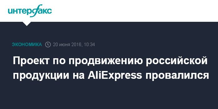 Москва. 20 июня. INTERFAX.RU -Пилотный проект Минпромторга по продвижению российской продукции на китайской интернет-площадке AliExpress провалился: за несколько месяцев на сайте было сделало всего 24 заказа отечественной продукции, пишет "Коммерсант".