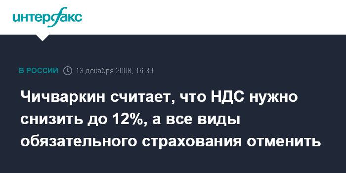 Чичваркин считает, что НДС нужно снизить до 12%, а все виды обязательного страхования отменить
