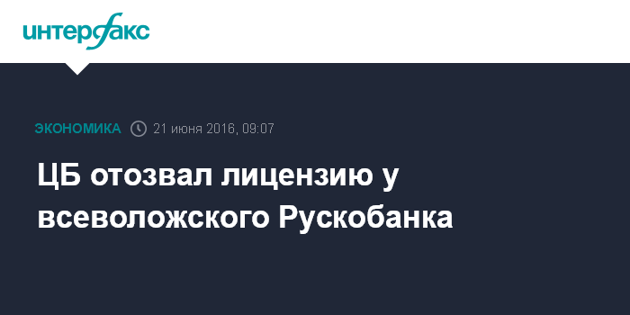 ЦБ отозвал лицензию у всеволожского Рускобанка