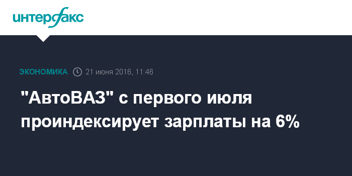 Москва. 21 июня. INTERFAX.RU - ОАО "АвтоВАЗ" с первого июля повысит зарплату сотрудникам на шесть процентов, сообщил "Интерфаксу" пресс-секретарь компании Сергей Ильинский.