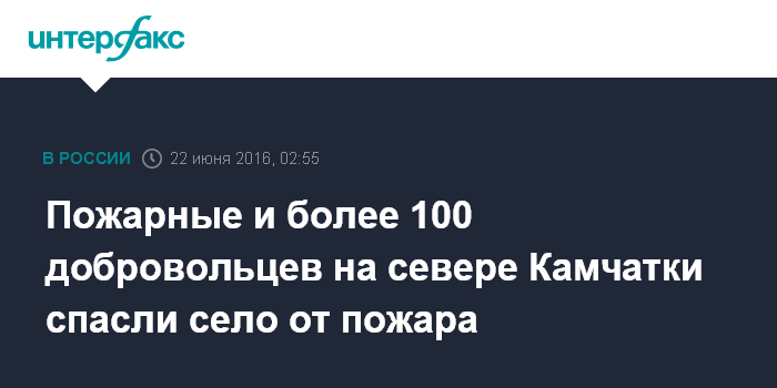 Москва. 22 июня. INTERFAX.RU - В Пенжинском районе Камчатского края тундровый пожар угрожал селу Аянке, но пожарные и сельчане отвели огонь от домов.