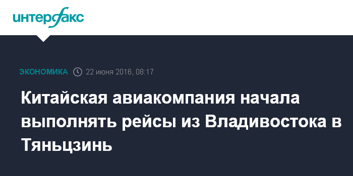 Москва. 22 июня. INTERFAX.RU - Авиакомпания Tianjin Airlines (Тяньцзиньские авиалинии) начала выполнять регулярные авиарейсы из Владивостока в Тяньцзинь (север Китая), сообщает пресс-служба ОАО "Международный аэропорт Владивосток" (МАВ).