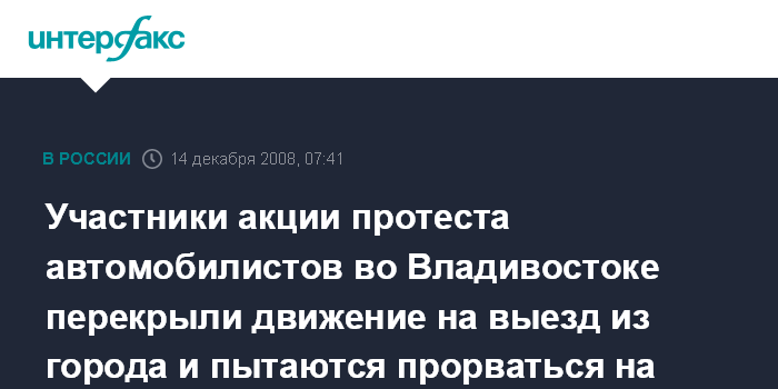 Как сообщили "Интерфаксу" в оргкомитете акции протеста, перекрытие дорог и попытки прорваться на территорию аэропорта не входили в планы мероприятия. По словам собеседника агентства, это делают "отдельные группы радикально настроенных автовладельцев Приморья".