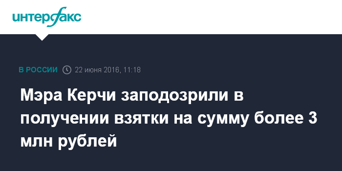Пресс-служба Главного следственного управления Следственного комитета РФ в Крыму позже сообщила подробности дела: мэр получил $50 тысяч вечером 21 июня и после передачи денег был задержан оперативными сотрудниками крымского управления ФСБ.