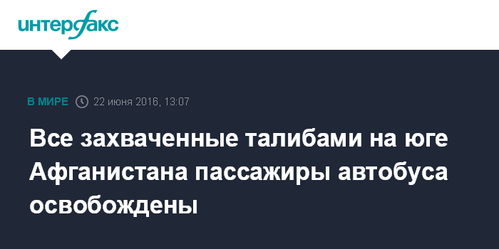 Москва. 22 июня. INTERFAX.RU - Боевики экстремистского движения "Талибан" в среду утром освободили пятерых последних пассажиров из 43, захваченных ранее в заложники на юге Афганистана.