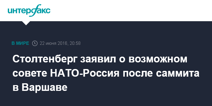 Москва. 22 июня. INTERFAX.RU - Генсек НАТО Йенс Столтенберг заявил в интервью агентству AP, что существует вероятность проведения новой встречи Совета НАТО-Россия (СРН) после саммита НАТО в Варшаве, который запланирован на 8-9 июля.