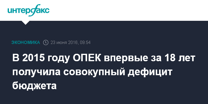 В 2015 году ОПЕК впервые за 18 лет получила совокупный дефицит бюджета