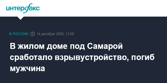 "Сегодня утром в одной из квартир сработало неустановленное взрывное устройство. Мужчина, находившийся в этой квартире, скончался на месте. В настоящее время все обстоятельства дела выясняются. По предварительной версии, мужчина взорвался сам", - сообщили "Интерфаксу" в пресс-службе следственного управления СКП РФ по Самарской области.