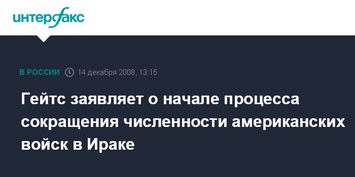 Выступая на авиабазе Балад к северу от Багдада, Р.Гейтс сказал, что процесс сокращения численности американских войск уже начался.