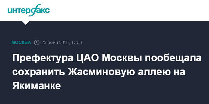 Москва. 23 июня. INTERFAX.RU - Мемориальная жасминовая аллея на улице Академика Петровского будет сохранена, говорится в сообщении, размещенном на сайте префектуры ЦАО.